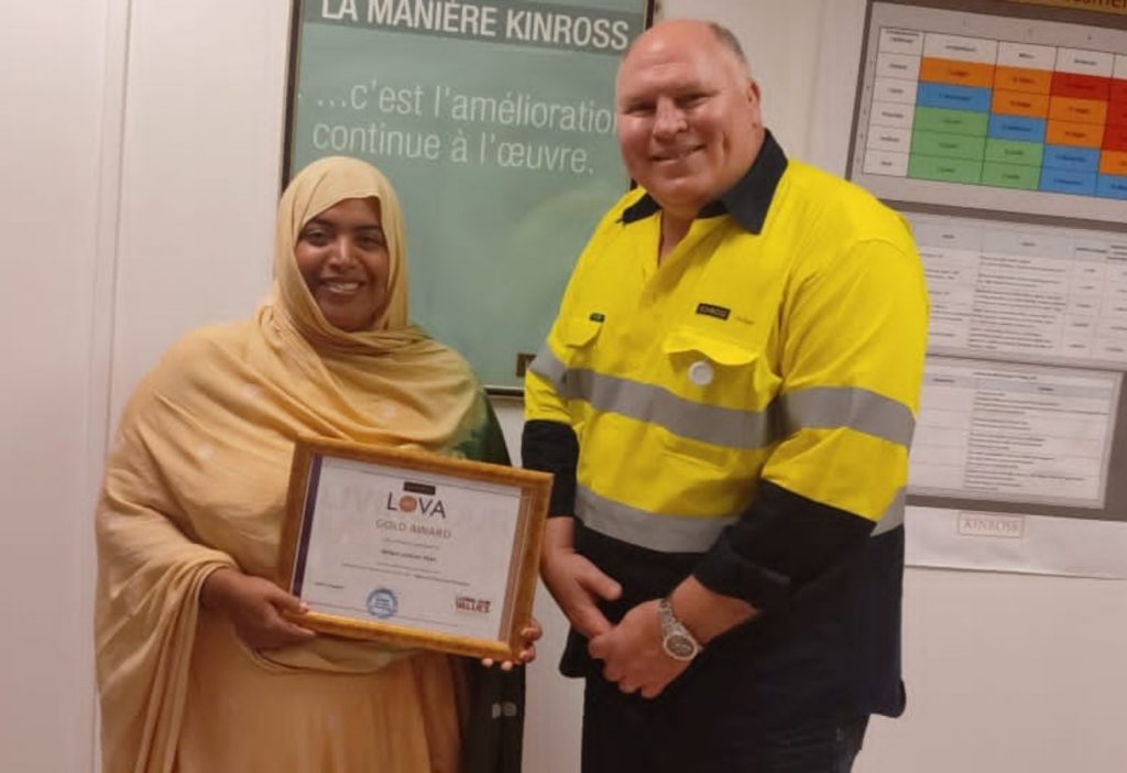 Ahlam accepts her LOVA award from Gavin Ferguson, Vice-President & General Manager, Tasiast