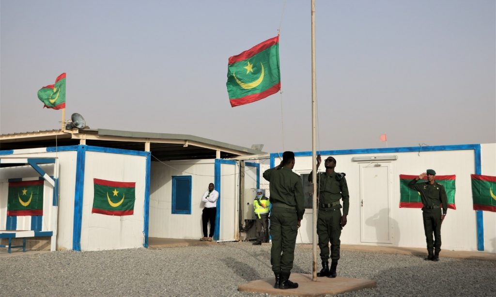 The Mauritanian flag is raised during a commemorative ceremony