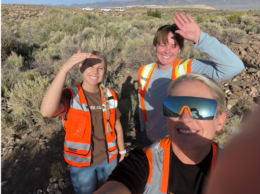 Kamryn and Stephanie in the field at Round Mountain with a coworker