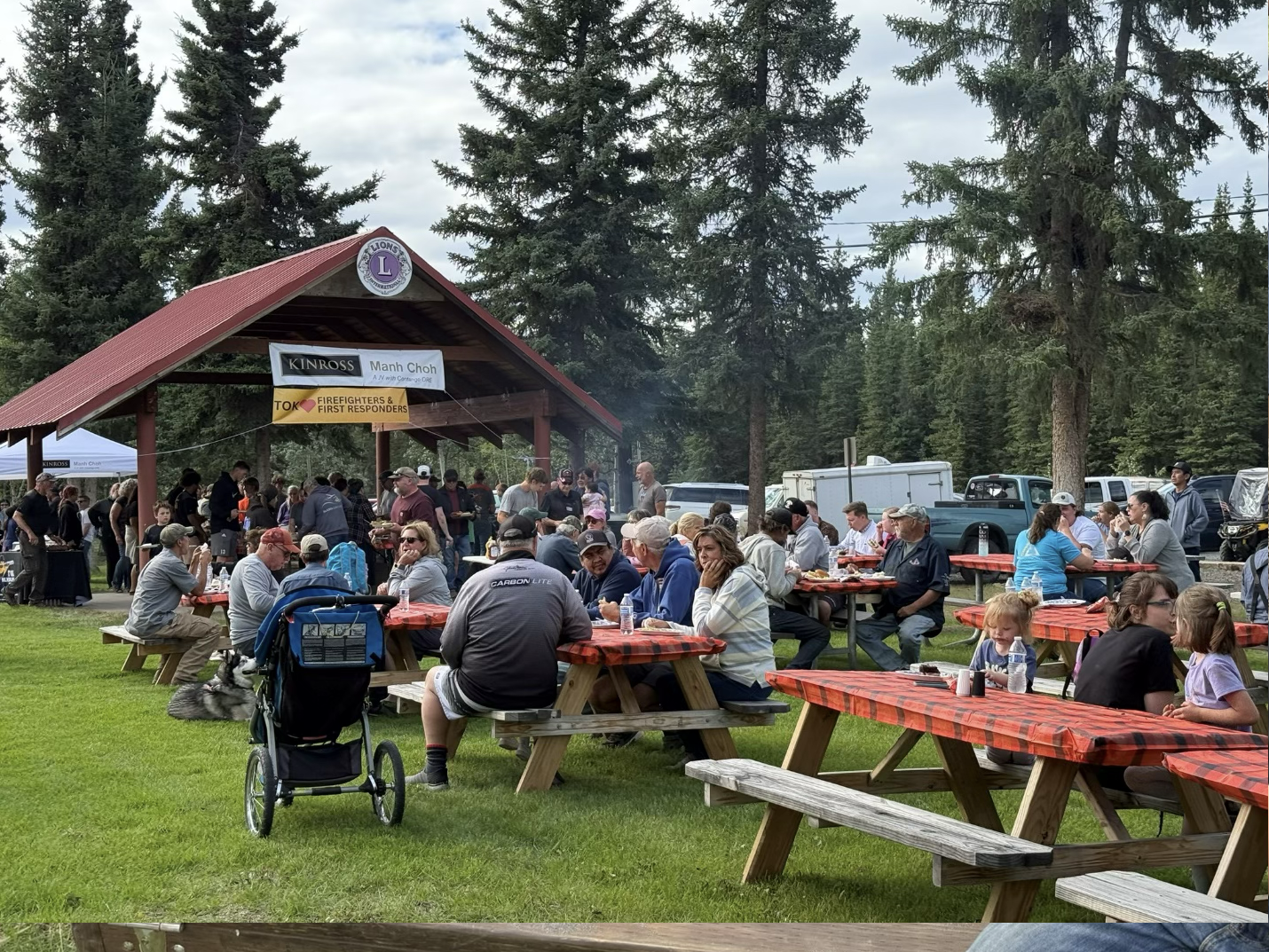 Manh Choh employees and community members share a meal at the community BBQ in Tok, Alaska