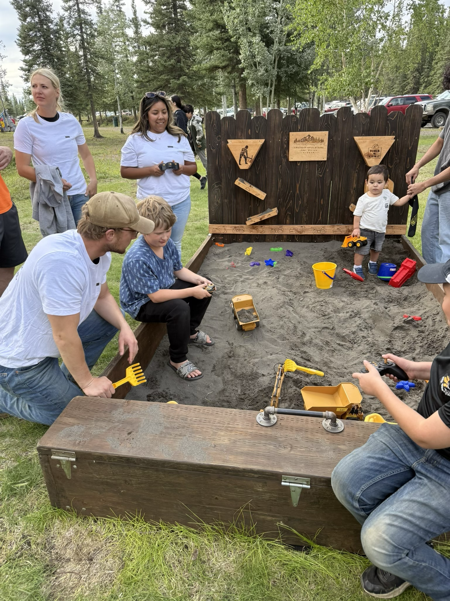Attendees play with remote-controlled mining equipment sponsored by our partner Kiewit at the Tok BBQ