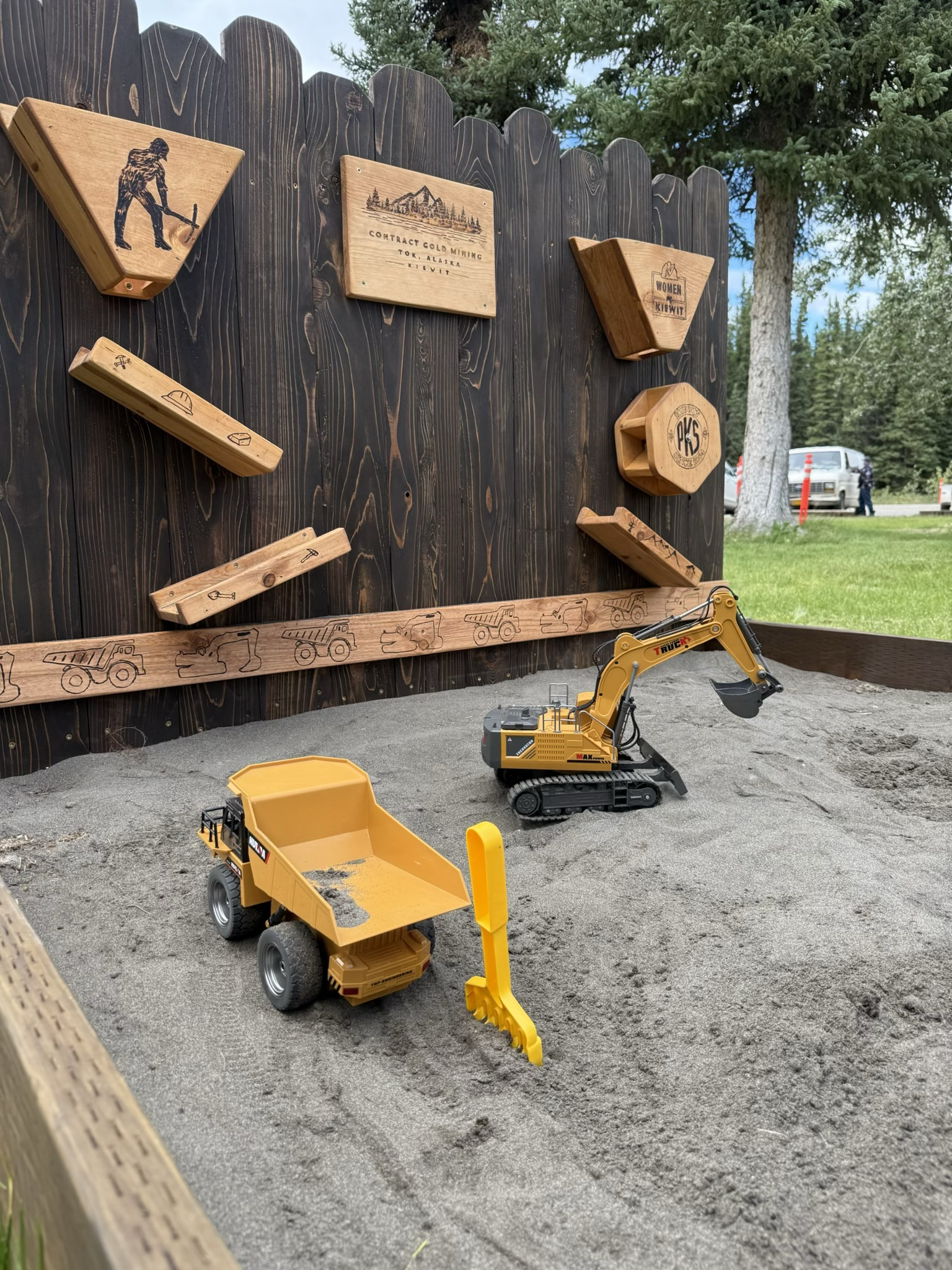 The custom sandbox and remote-controlled mining equipment sponsored by our partner Kiewit
