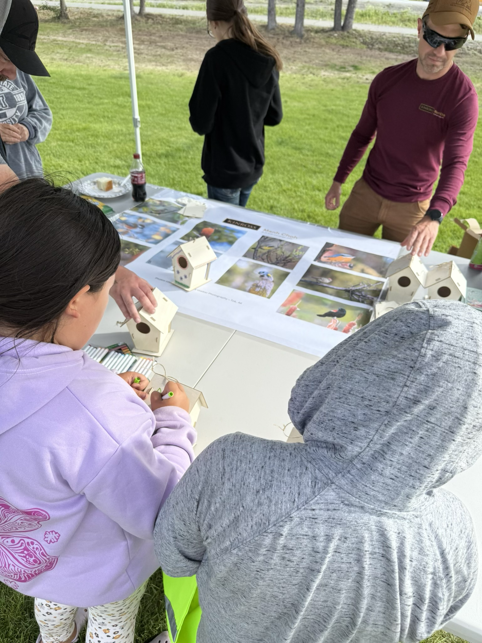 Members of Manh Choh’s environmental team host a 'bird identification' and 'bird house building booth' at the BBQ