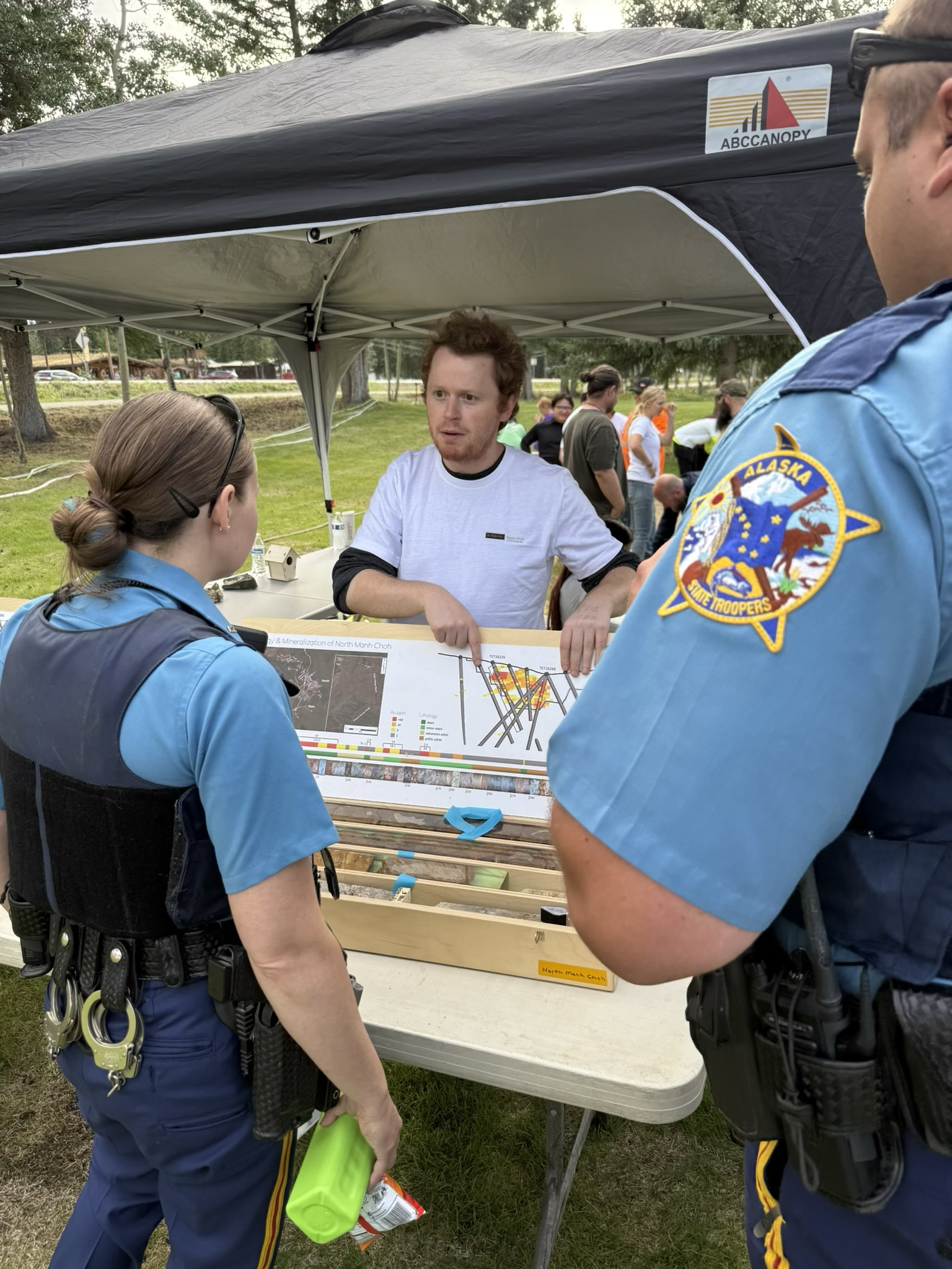 A Manh Choh employee provides information on core samples at the core booth