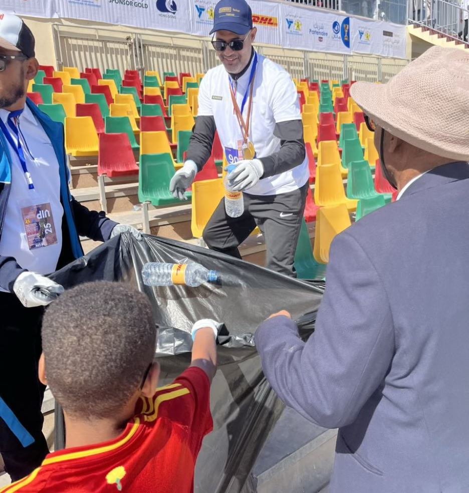Baba Salihi participates in the clean-up campaign at the end of the marathon